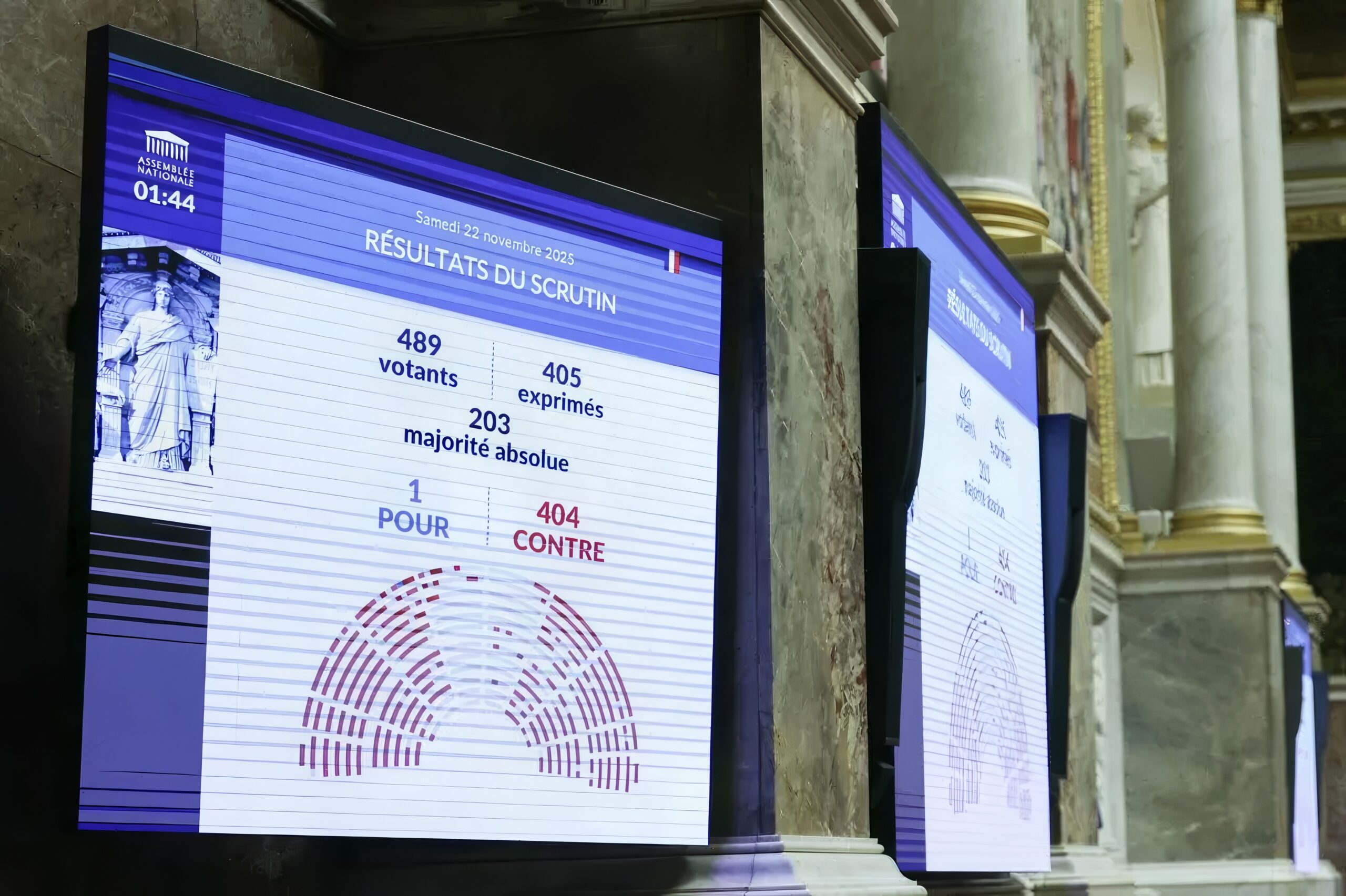 Amendé de toutes parts, à droite comme à gauche, le texte avait fini par ressembler à un “budget Frankenstein”, selon les mots du président de la commission des Finances, Éric Coquerel (LFI), ne satisfaisant aucun groupe, pas même ceux du camp macroniste, lequel s’est divisé entre abstentions et votes contre le PLF. Le Parti socialiste, qui s’enorgueillit d’avoir arraché quelques avancées comme la création d’un impôt sur la fortune improductive, a lui aussi estimé que “le compte n’y est pas”. Le texte a été rejeté au final par 404 voix contre et une voix pour (celle d’Harold Huwart, député centriste du groupe Liot). Jamais dans l’histoire de la Ve République un budget n’a été rejeté avec une telle ampleur.
