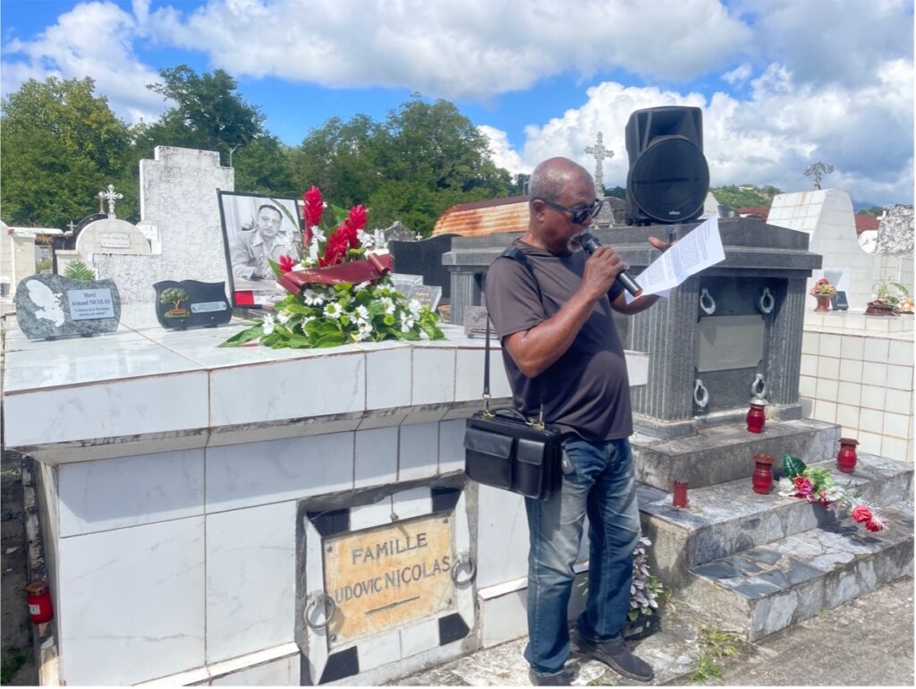 Après une déambulation jusqu’au cimetière, les militants se sont réunis devant la tombe d’André Aliker pour lui rendre hommage. Une gerbe a été déposée. Des discours ont été prononcés par Max Louis-Thérèse et Edmond Mondésir. Son parcours brillant et les conditions de son assassinat, ont été racontés devant une foule attentive.